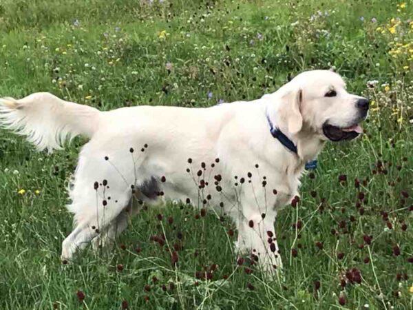Der kleine-große Easy bleibt fast im Nestchen. Unsere Freunde Stephan und Christine sind in unseren Golden Retrievern verliebt, kommen fast täglich zu uns, wenn wir Babys daheim haben und in jedem Wurf finden sie einen Liebling, den sie dann fast täglich betütteln und bemüttern. Die Familie hatte vor vielen Jahren einen Golden Retriever Mix, der im Alter krank wurde und eingeschläfert werden musste. Sie haben lange gebraucht bis sie den Verlust ihres Hundes verkraften konnten und sie wieder für einen treuen Begleiter bereit waren. Vor zwei Jahren haben sie von uns den schönen Max (Sunnys Sohn) bekommen und nun haben sie sich, als sie sich in Cocos Easy verschossen haben und er in sie…entschieden den kleinen Easy zu sich zu nehmen. Max, der natürlich auch täglich zu uns mitgekommen war, hat den kleinen Blauen total gemocht und der Mini hat sich ständig an seinem großen „Bruder“ Max gehalten. Es war so als ob sie wüssten, dass sie zueinander gehören werden.